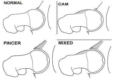 L’impingement femoroacetabolare (FAI) con dolore all’anca è causato da frequenti anormali contatti tra il labbro acetabolare e la parte tra collo e testa femorale. Due tipi di impingement sono descritti:1) L’ impingement tipo Cam (maggiormente nei giovani, negli atleti maschi) e 2) l’impingement tipo Pincer (colpisce prevalentemente le donne di mezza età).